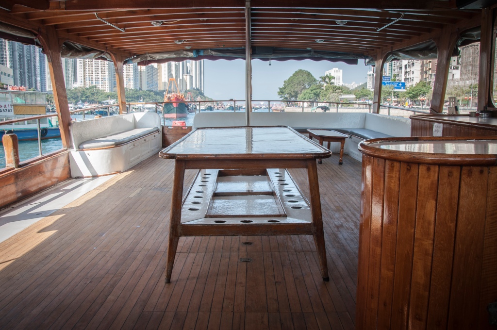 44 People allowed with a extended lower deck. Plenty of space in multiple areas – Bean bags on Top – Big table and small lounges area downstairs.